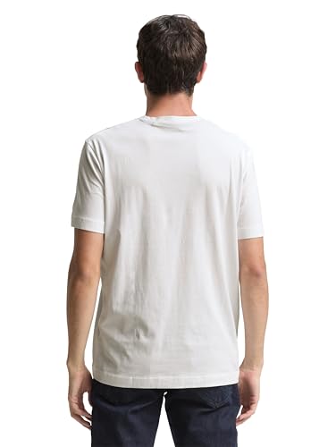 TOM TAILOR Herren T-Shirt mit Streifen-Print & Logo, 20000 - White, XL