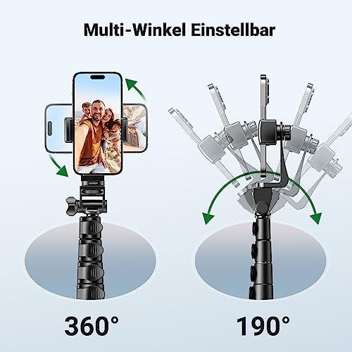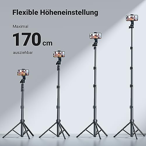 UGREEN Handy Stativ 170cm Stabil und Tragbar Handy Ständer mit Bluetooth Fernbedienung, Smartphone Stative kompatibel mit iPhone 17 16 15 14 Pro Max,14 Pro,14, Galaxy S23 Ultra, S23+, Huawei, GoPro