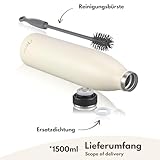 Milu Edelstahl Trinkflasche 350ml, 500ml, 750ml, 1000ml, 1.5L – Thermosflasche, Isolierte Wasserflasche, Auslaufsichere Isolierflasche doppelwandig, Kohlensäure geeignet (Buttercream, 1500ml)