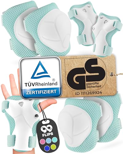 99FLIPS Protektoren Schoner Set Kinder - TÜV Skateboard Schützer Set Scooter Knieschoner blau S/M