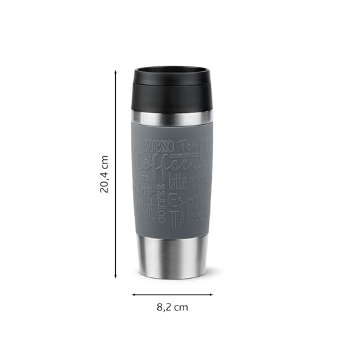 Emsa N20205 Travel Mug Classic Isolierbecher 0,36 Liter | neuer Komfort-Schraubverschluss | Edelstahl | 4h heiß und 8h kalt | 100% dicht | spülmaschinenfest | 360°-Trinköffnung | Dunkelgrau