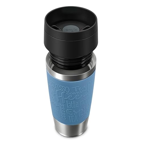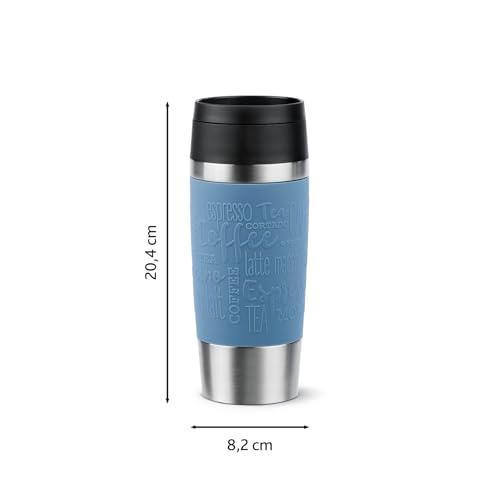 Emsa Travel Mug 360 ml Classic Isolierbecher, Kaffeebecher aus Edelstahl, neuer Komfort-Schraubverschluss, 4h heiß und 8h kalt, 100% dicht, spülmaschinenfest, 360°-Trinköffnung, aquablau, N20211