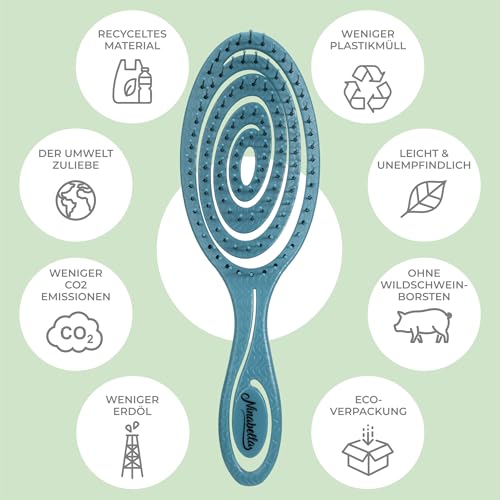 Ninabella Haarbürste ohne Ziepen - Bürste für Damen und Herren - Detangler Bürste auch für Locken & Lange Haare - Entwirrbürste Haarbürsten - Blaugrün
