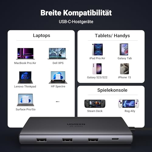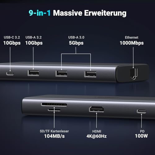 UGREEN Revodok Pro 109 USB C Hub 10Gbps USB A 3.2&USB C 3.2, HDMI 4K@60Hz, PD100W, Ethernet, SD/TF, Docking Station kompatibel mit iPhone 17/16, MacBook Pro/Air, Surface, Galaxy S24/S23 usw.