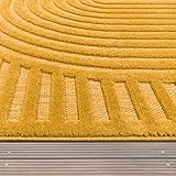 Paco Home Outdoor Teppich wetterfest & langlebig Moderne Boho-Designs mit 3D-Effekt Skandi-Look UV-beständig & robust für Balkon, Garten, Wohnzimmer & Küche, Grösse:160 cm Rund, Farbe:Gelb 4