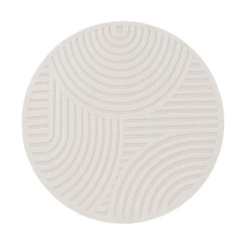 Paco Home Outdoor Teppich wetterfest & langlebig Moderne Boho-Designs mit 3D-Effekt Skandi-Look UV-beständig & robust für Balkon, Garten, Wohnzimmer & Küche, Grösse:160 cm Rund, Farbe:Creme 4