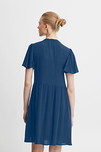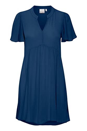 ICHI IHMARRAKECH SO DR11 Damen Freizeitkleid Kleid 100% Viskose Minikleid mit Flügelärmeln V-Ausschnitt Regular-Fit, Größe:L, Farbe:Total Eclipse (194010)