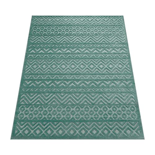 Paco Home - Outdoor Teppich wetterfest Boho & Skandi 3D-Optik für Terrasse, Balkon & Garten Türkis, 160 cm Rund