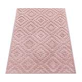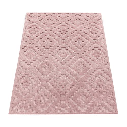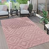 Paco Home Outdoor Teppich wetterfest Boho & Skandi 3D-Optik für Terrasse, Balkon & Garten 120 cm Rund, Pink 2