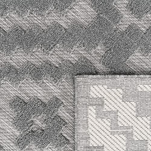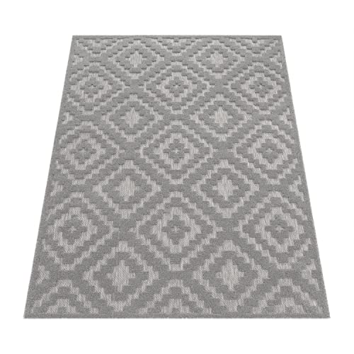 Paco Home Outdoor Teppich wetterfest & langlebig Moderne Boho-Designs mit 3D-Effekt Skandi-Look UV-beständig & robust für Balkon, Garten, Wohnzimmer & Küche, Grösse:160 cm Rund, Farbe:Grau 2