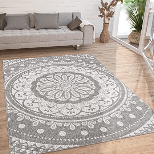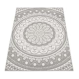 Paco Home Outdoor Teppich wetterfest & robust modernes Mandala & Boho Design pflegeleicht & flachgewebt für Balkon, Terrasse, Garten, Wohnzimmer & Küche Ethno Mandala, Grösse:200x280 cm, Farbe:Grau