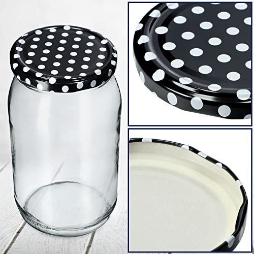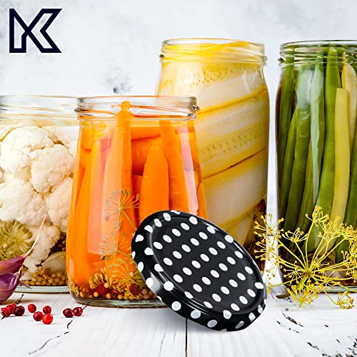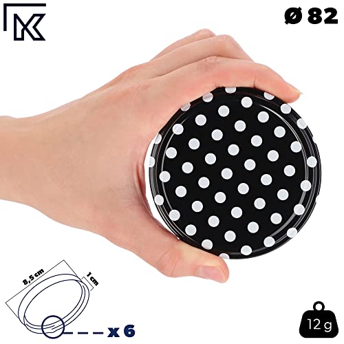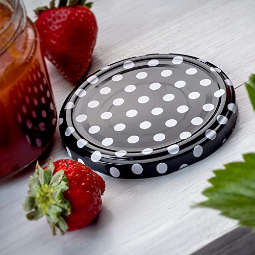 KADAX Schraubdeckel fi82 mm, Twist-Off-Deckel Set aus Metall, Ersatzdeckel für Einmachgläser, Deckel mit 6 Einrastzähnen für Sturzgläser und Einmachgläser (Schwarz gepunktet, 50 Stück)