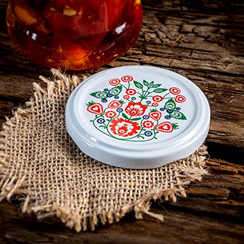 KADAX Schraubdeckel fi82 mm, Twist-Off-Deckel Set aus Metall, Ersatzdeckel für Einmachgläser, Deckel mit 6 Einrastzähnen für Sturzgläser und Einmachgläser (Folklore, 10 Stück)
