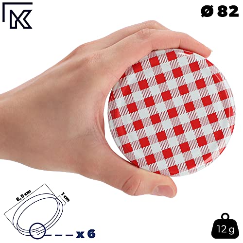 KADAX Schraubdeckel fi82 mm, Twist-Off-Deckel Set aus Metall, Ersatzdeckel für Einmachgläser, Deckel mit 6 Einrastzähnen für Sturzgläser und Einmachgläser (Rot kariert, 10 Stück)