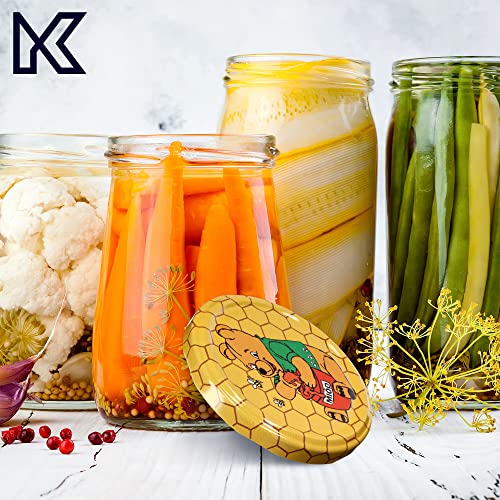 KADAX Schraubdeckel fi82 mm, Twist-Off-Deckel Set aus Metall, Ersatzdeckel für Einmachgläser, Deckel mit 6 Einrastzähnen für Sturzgläser und Einmachgläser (Winnie Puuh, 50 Stück)