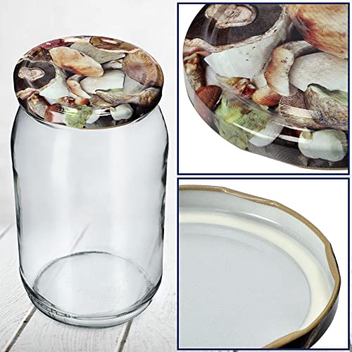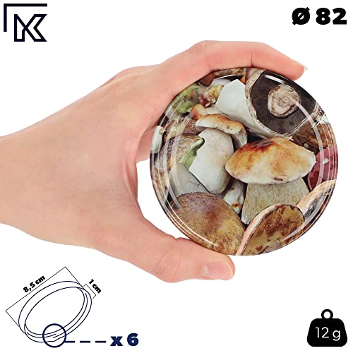 KADAX Schraubdeckel fi82 mm, Twist-Off-Deckel Set aus Metall, Ersatzdeckel für Einmachgläser, Deckel mit 6 Einrastzähnen für Sturzgläser und Einmachgläser (Pilze, 10 Stück)