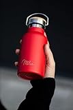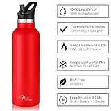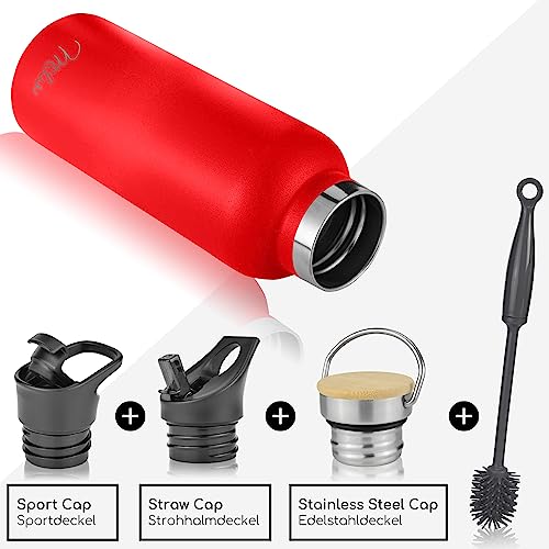 Milu Edelstahl Trinkflasche 350ml 500ml 750ml 1000ml (+3 Deckel) - Thermosflasche mit Strohhalm, Isolierte Wasserflasche, Auslaufsichere Isolierflasche doppelwandig, Kohlensäure geeignet (Rot, 750ml)