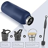 Milu Edelstahl Trinkflasche 350ml 500ml 750ml 1000ml (+3 Deckel) - Thermosflasche mit Strohhalm, Isolierte Wasserflasche, Auslaufsichere Isolierflasche doppelwandig (Navyblau, 750ml)