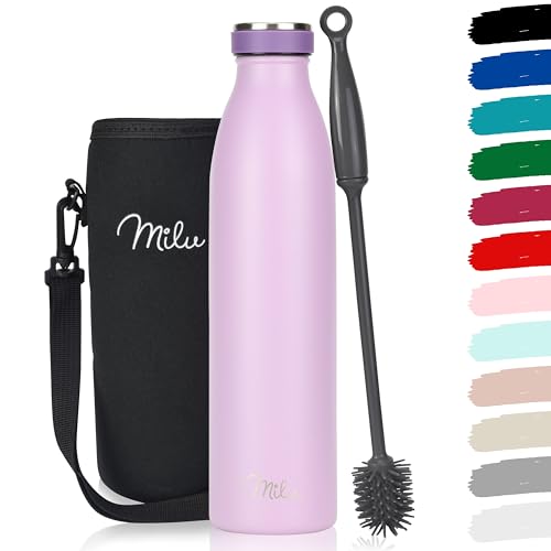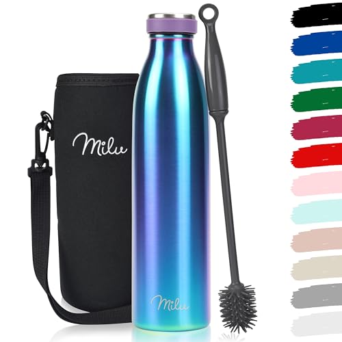 Milu Edelstahl Trinkflasche 350ml 500ml 750ml 1L, 1,5L Thermosflasche, Isolierte Wasserflasche, Auslaufsichere Isolierflasche doppelwandig Kohlensäure geeignet – inkl. Reinigungsbürste (Granit, 750ml)