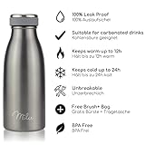 Milu Edelstahl Trinkflasche 350ml, 500ml, 750ml, 1L, 1,5L – Thermosflasche für Kinder Erwachsene auslaufsicher Isolierflasche Kohlensäure geeignet– inkl. Reinigungsbürste (Grau, 350ml)