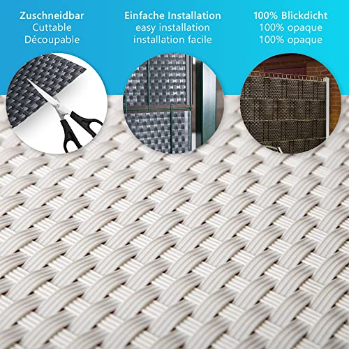 NYVI Polyrattan Sichtschutzstreifen Privafence 255x19 cm - Sichtschutz für Doppelstabmatten Zaun 5 Rollen Weiß