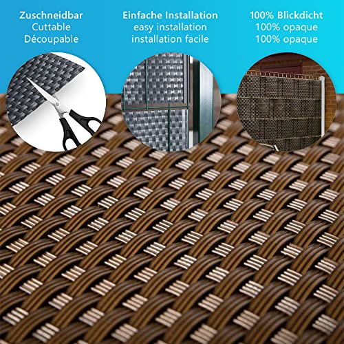 NYVI Polyrattan Sichtschutzstreifen Privafence Braun 255 x 19 cm 5 Rollen (12,75 Meter) - SPARSETS - Sichtschutz für Doppelstabmatten Zaun - Premium Zaunsichtschutz