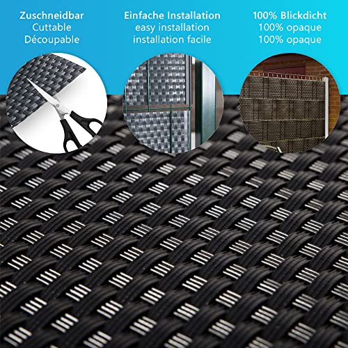 NYVI Polyrattan Sichtschutzstreifen Privafence Schwarz 255 x 19 cm 10 Rollen (25,5 Meter) - SPARSETS - Sichtschutz für Doppelstabmatten Zaun - Premium Zaunsichtschutz
