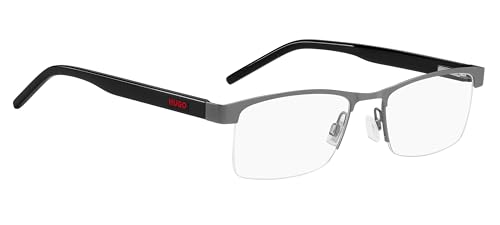 HUGO Rechteckig Metall Brillen in Matte Dark Ruthenium für Herren, Brille mit Sehstärke, optional mit Sonnenbrillen tönung oder Blaulichtfilter (Modell 106617)