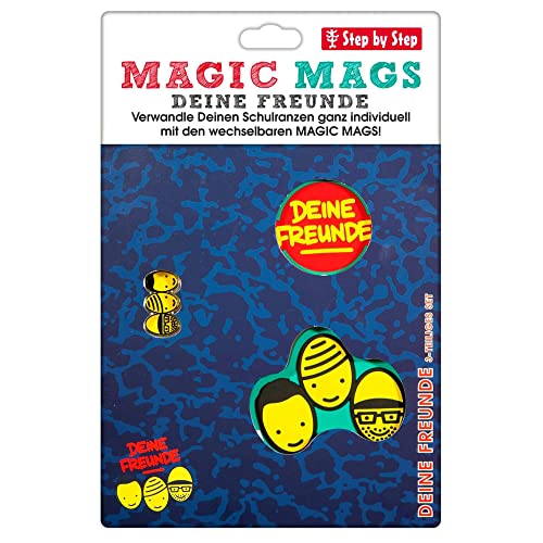 Step by Step Magic MAGS „Deine Freunde“, 3-teilig, 2 Magnet-Applikationen und 1 Anhänger, passend zum Schulranzen oder Vorschulrucksack, blau-rot-gelb-schwarz, Deine Freunde-Design