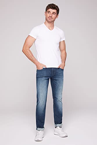 Camp David NI:CO Herren Jeans Regular Fit Blue Jogg | gerades Bein, mittlere Leibhöhe, Five-Pocket & Zip-Fly, Used-Waschung mit Bleaching, 3D-Knitter, tonige Steppnähte, weicher Jogg-Denim 32 32