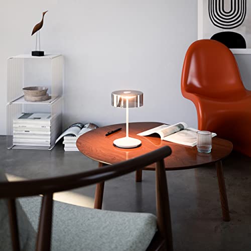 SIGOR Numotion - Dimmbare LED Akku-Tischleuchte Indoor & Outdoor, IP54 spritzwassergeschützt, Höhe 26,5 cm, aufladbar mit Easy Connect, 12 h Leuchtdauer, schneeweiß