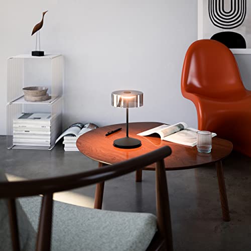 SIGOR Numotion - Dimmbare LED Akku-Tischleuchte Indoor & Outdoor, IP54 spritzwassergeschützt, Höhe 26,5 cm, aufladbar mit Easy Connect, 12 h Leuchtdauer, nachtschwarz