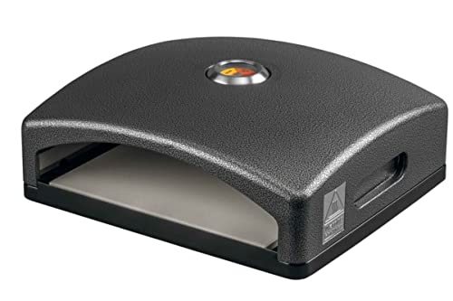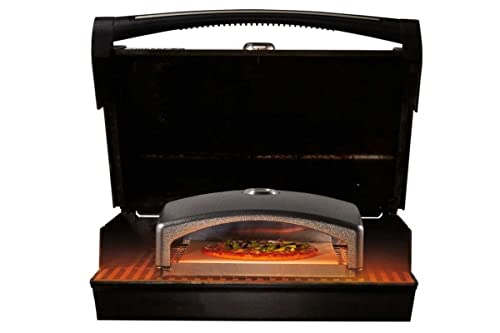 OWIM Pizzaofen Grillaufsatz - Cordierit Pizzastein - Schwarz - Ideal für Pizzas, Flammkuchen & Baguettes - Gas- & Holzkohlegrillgeeignet - Integriertes Thermostat