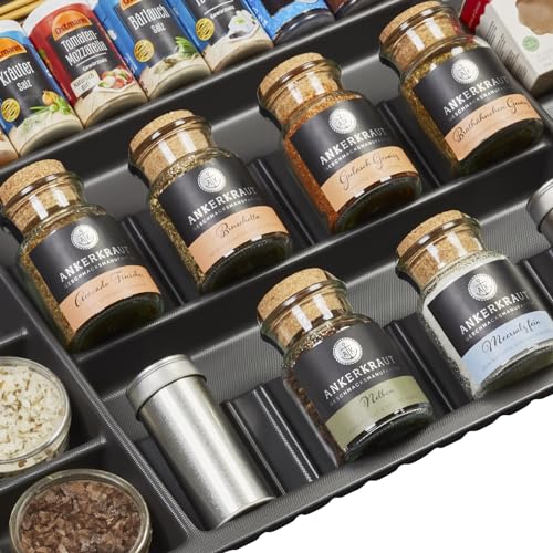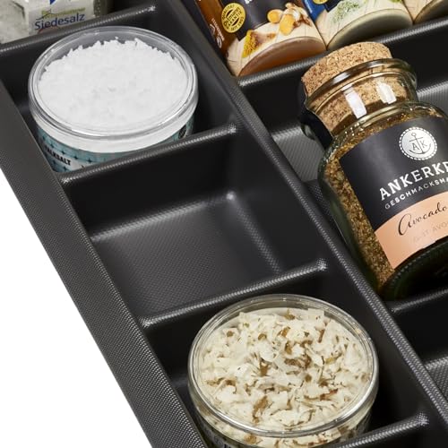 Orga-Box I Multi-Gewürzdoseneinsatz 515 x 473 x 40 mm lavagrau mit Perlstruktur Multi-Gewürzglaseinsatz für Tandembox Antaro/Intivo u. ModernBox im 60er Schrank Schubladeneinsatz