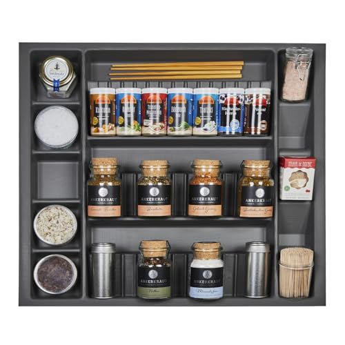 Orga-Box I Multi-Gewürzdoseneinsatz 515 x 473 x 40 mm oriongrau mit Antiruschbeschichtung Multi-Gewürzglaseinsatz für Tandembox Antaro/Intivo u. ModernBox im 60er Schrank Schubladeneinsatz