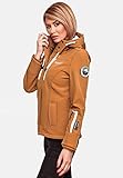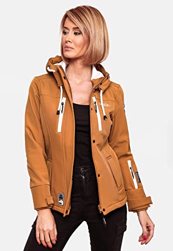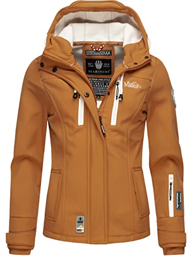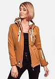 MARIKOO Damen Softshelljacke Übergangsjacke mit Kapuze Kleinezicke Caramel Brown Gr. XL