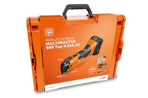 FEIN Akku MULTIMASTER AMM 500 Plus Top 4.0 Ah AS, MultiTool mit über 30 Zubehören – zum Sägen in Holz und Metall, Schleifen, Aufnahme StarlockPlus, QuickIN Werkzeugwechsel, mit Akkus und Ladegerät