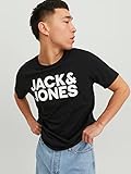 Rundhalsshirt JACK & JONES JJECORP mit Logo-Print und klassischem Rundhals, Herren, Gr. XL, schwarz, Single Jersey, Obermaterial: 100% Baumwolle, bedruckt, regular fit taillenbedeckt, Rundhals, Shirts, mit Rundhalsausschnitt