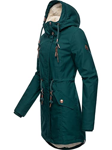 Ragwear Damen Mantel lange warme Winterjacke mit Teddyfell-Kapuze Elsie Intl Dark Green22 Gr. M