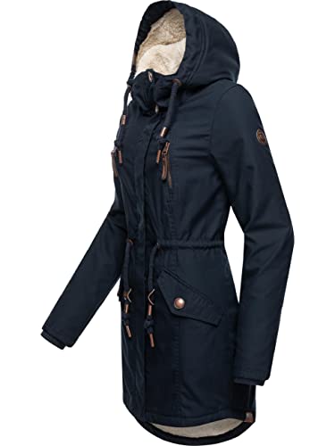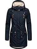 Ragwear Damen Mantel lange warme Winterjacke mit Teddyfell-Kapuze Elsie Intl Navy22 Gr. M