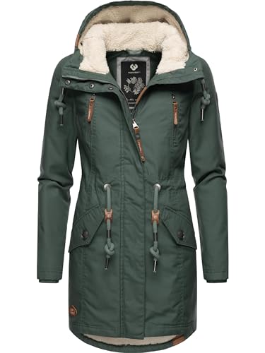 Ragwear Damen Mantel lange warme Winterjacke mit Teddyfell-Kapuze Elsie Intl Cinnamon22 Gr. L