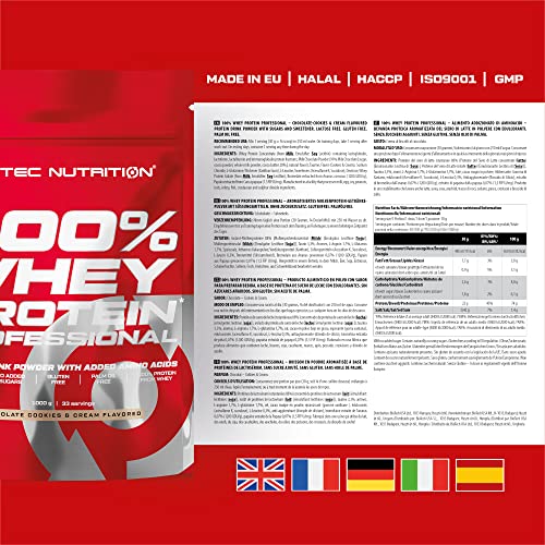 Scitec Nutrition 100% Whey Protein Professional - Angereichert mit zusätzlichen Aminosäuren und Verdauungsenzymen - Glutenfrei - Palmölfrei, 1 kg, Schokolade-Cookies & Cream