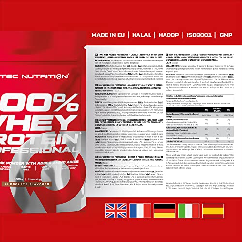 Scitec Nutrition 100% Whey Protein Professional - Angereichert mit zusätzlichen Aminosäuren und Verdauungsenzymen - Glutenfrei - Palmölfrei, 1 kg, Schokolade