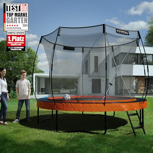 KINETIC SPORTS Trampolin Outdoor Ultimate Pro Ø 244/305/366/427 cm – TÜV Rheinland, Kindertrampolin mit Leiter, Gartentrampolin im Kürbis-Design, bis zu 160 kg Sunset Orange Ø 305 cm