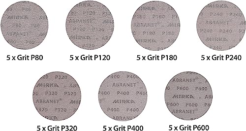 Mirka Abranet Netzschleifscheiben Ø 150mm Klett/Mix-Pack 5 von jeder Körnung 80, 120, 180, 240, 320, 400, 600/35 Stk/Für alle 150mm Exzenterschleifer und Schleifmaschinen