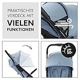 hauck Travel N Care Plus, Dusty Blue - Reisebuggy für Kinder ab Geburt bis 22 kg mit Liegefunktion & Kopfposter - Leicht (7,2 kg) & Einhändig Faltbar - Selbststehend - UPF 50+ & Netzfenster