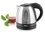 Emerio Wasserkocher Edelstahl, 1.2 Liter, 1500 Watt, 360° Basis kabelgebunden -> Wasserkocher kabellos, BPA-frei, abgedecktes Heizelement, Auto-Off, ideal für Zuhause, Camping oder Büro, WK-108079