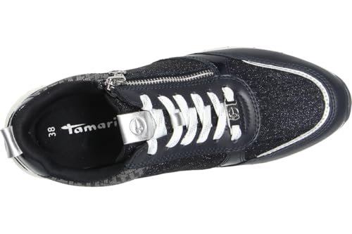 Tamaris Damen Low-Top Sneaker, Frauen Halbschuhe,Wechselfußbett,schnürschuhe,schnürer,Plateausohle,Halbschuhe,Sportschuhe,Navy Comb,38 EU