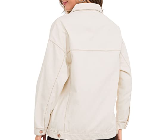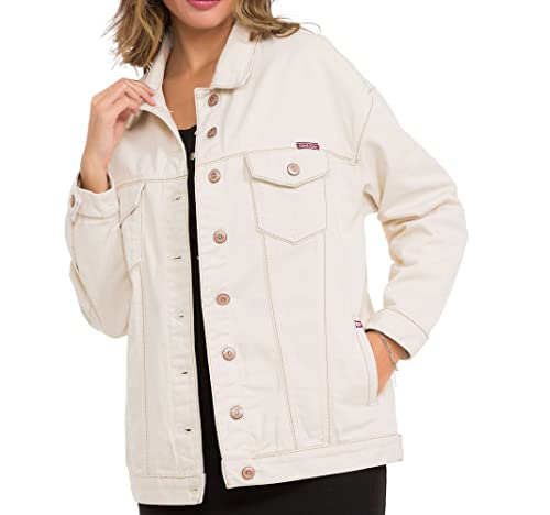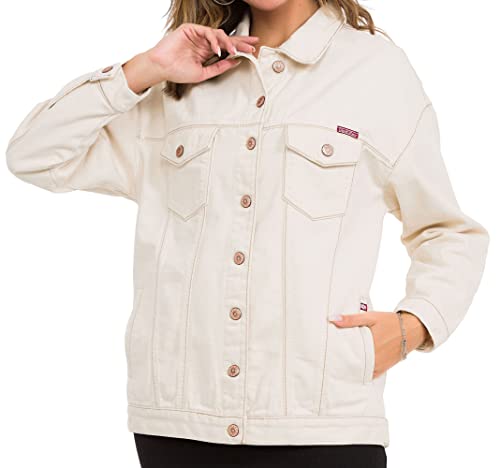 Cipo & Baxx Damen Jacke WJ211 Beige – Klassische Jeansjacke im Modernen Casual Streetwear Look mit Knopfleiste & Brusttaschen – Vielseitige Übergangsjacke für Alltag & Freizeit - WJ211 Beige XL
