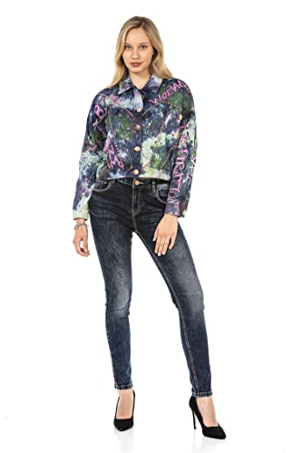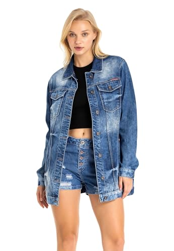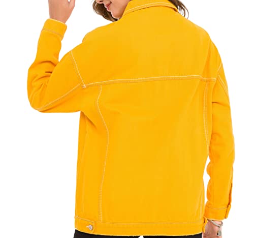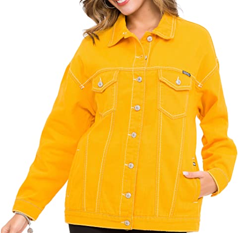 Cipo & Baxx Damen Jacke WJ211 Gelb – Klassische Jeansjacke im Modernen Casual Streetwear Look mit Knopfleiste & Brusttaschen – Vielseitige Übergangsjacke für Alltag & Freizeit - WJ211 Gelb XL